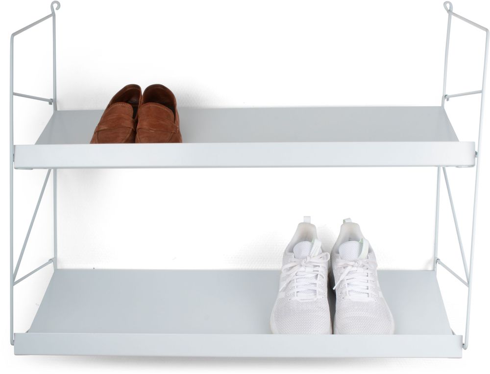 En snygg och modern skohylla i metall med två hyllplan. Monteras lätt på vägg i önskad höjd.