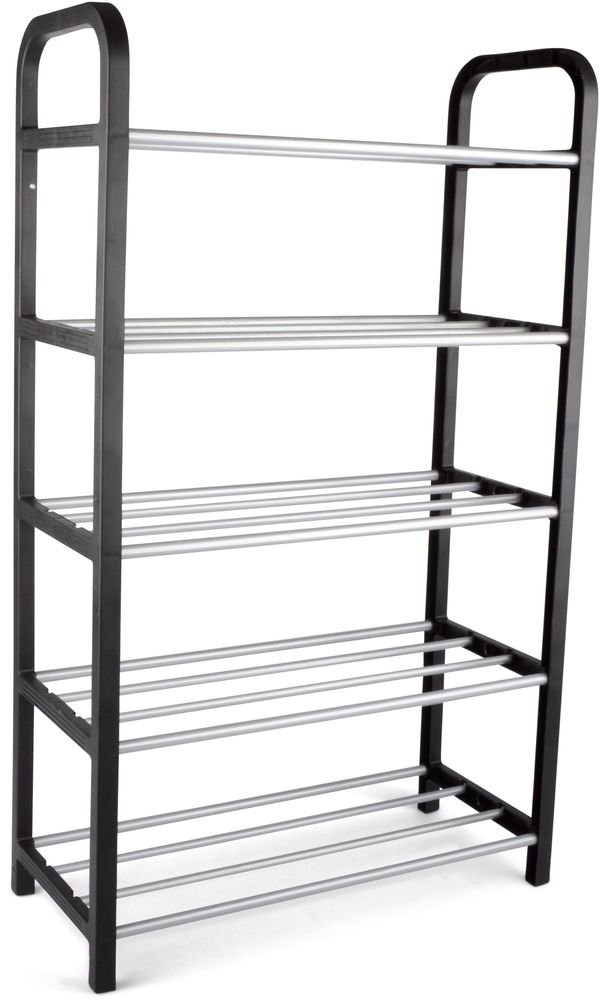 Ett stilrent och praktisk skoställ med en modern design. Tillverkat i plast med hela fem hyllplan för förvaring.