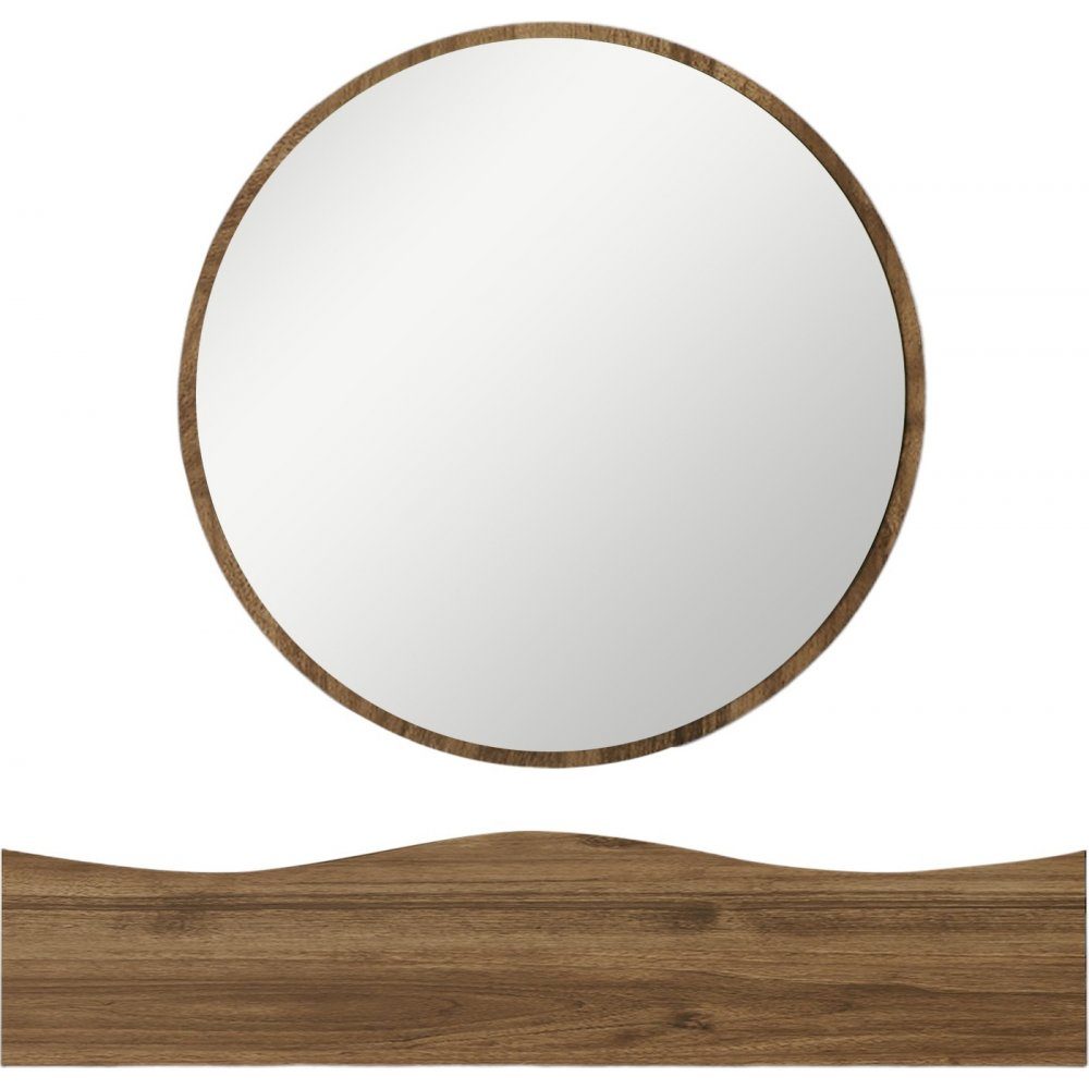 Vägghängt sminkbord av melaminbelagd spånskiva med tillhörande spegel