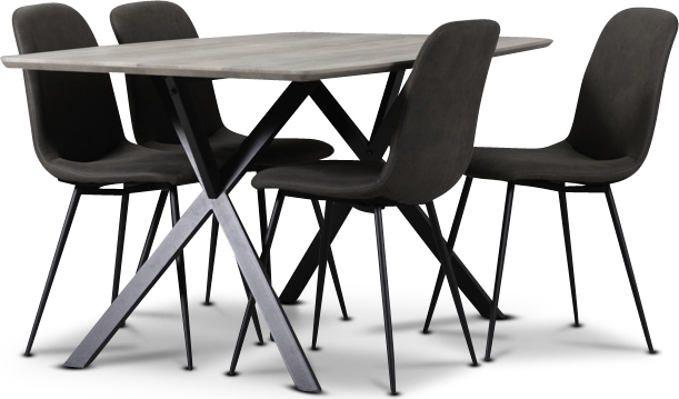 Smokey matgrupp, matbord med 4 st Smokey matstolar - Grå/Vintage