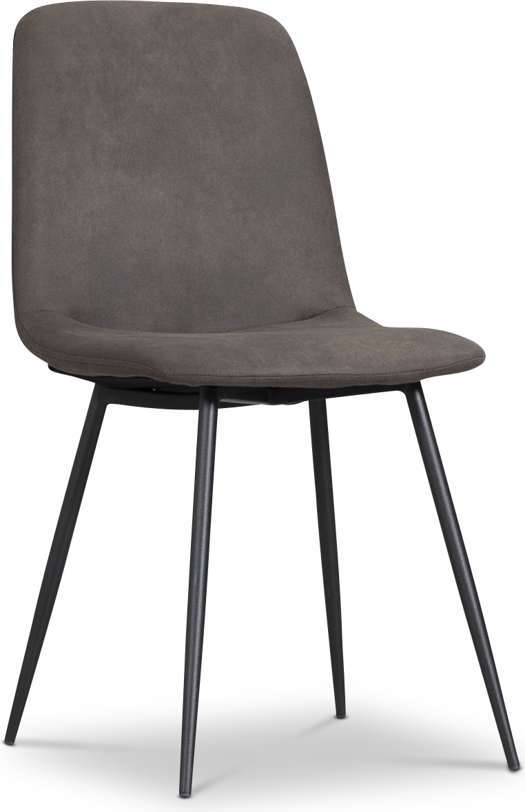 Matgrupp från Skånska Möbelhuset, Smokey matbord 120 cm i diameter med mdf-toppskiva med ljus betsad ekfoliering. Medföljer 4 st matchande Smokey matstolar i gråbrunt vintage tyg med svarta ben.