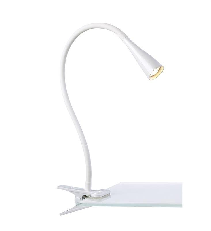 Snake praktiska bordslampa med klämfäste i en modern design. Tillverkad i vit metall med ställbart lamphuvud. 2 meter sladd med strömbrytare på sladden. 3,5W fast LED. Passar perfekt till skrivbordet eller kontoret.