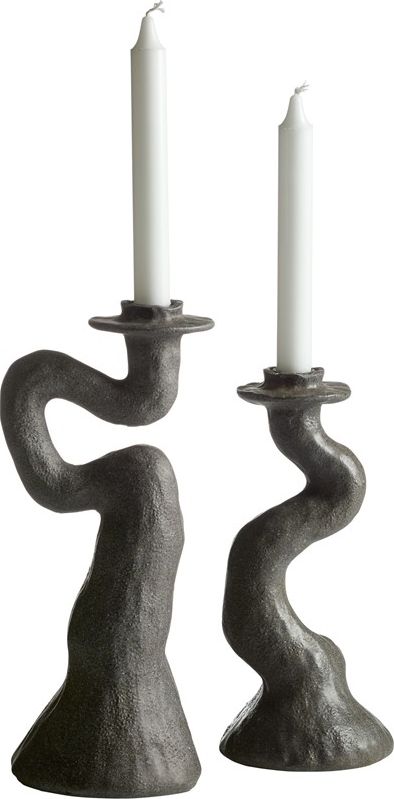 Cool ljusstake formad som ett krokigt träd i en grå färg.