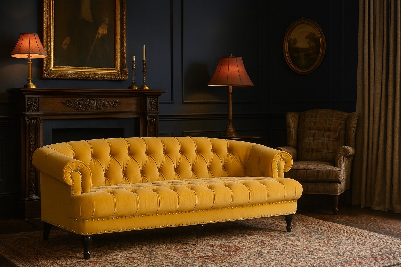 Oxford Deluxe Chesterfield 3-sits soffa i gul sammet är en fantastisk möbel som utstrålar både elegans och värme. Den djupa, rika guldfärgen ger soffan en lyxig och inbjudande känsla, medan sammetstyget tillför en mjuk och exklusiv textur. Den klassiska Chesterfield-designen med de karakteristiska knapparna och armstöden ger soffan ett tidlöst och sofistikerat uttryck som passar perfekt i både moderna och traditionella vardagsrum.