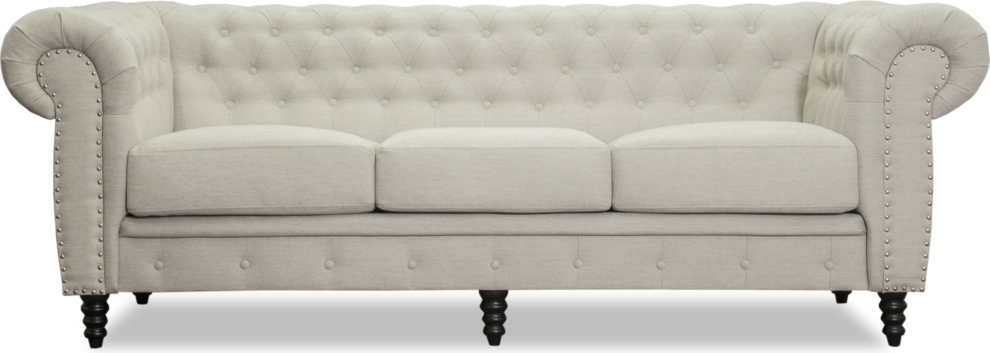 Ashford 3-sitssoffa i Chesterfield-stil är en sofistikerad och klassisk möbel som utstrålar elegans och tradition. Klädd i beige linne kombinerar soffan en tidlös design med ett modernt materialval som ger en varm och inbjudande känsla. De djuphäftade knapparna och rullade armstöden framhäver soffans ikoniska Chesterfield-karaktär.