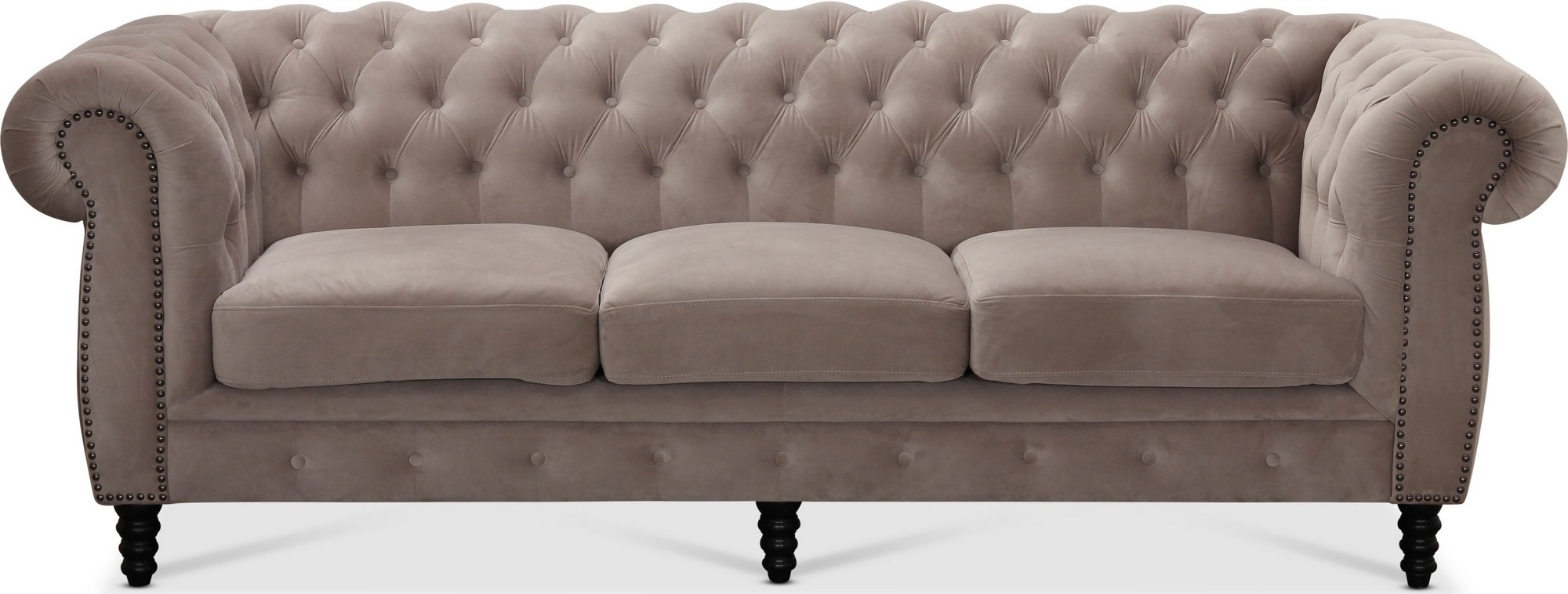 Chesterfield Cambridge 3-sits soffa i ljusgrå sammet är en sofistikerad och tidlös möbel som kombinerar den klassiska Chesterfield-designen med modern komfort. Den ljusgrå sammeten ger soffan en mjuk och elegant textur, vilket gör den till ett perfekt val för att skapa en sofistikerad atmosfär i ditt vardagsrum.