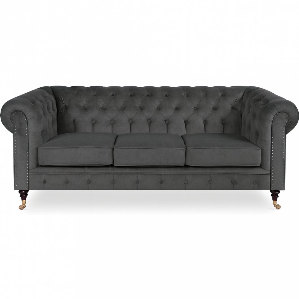 Soffa Chesterfield Cambridge Deluxe 225 cm - Mörkgrå sammet