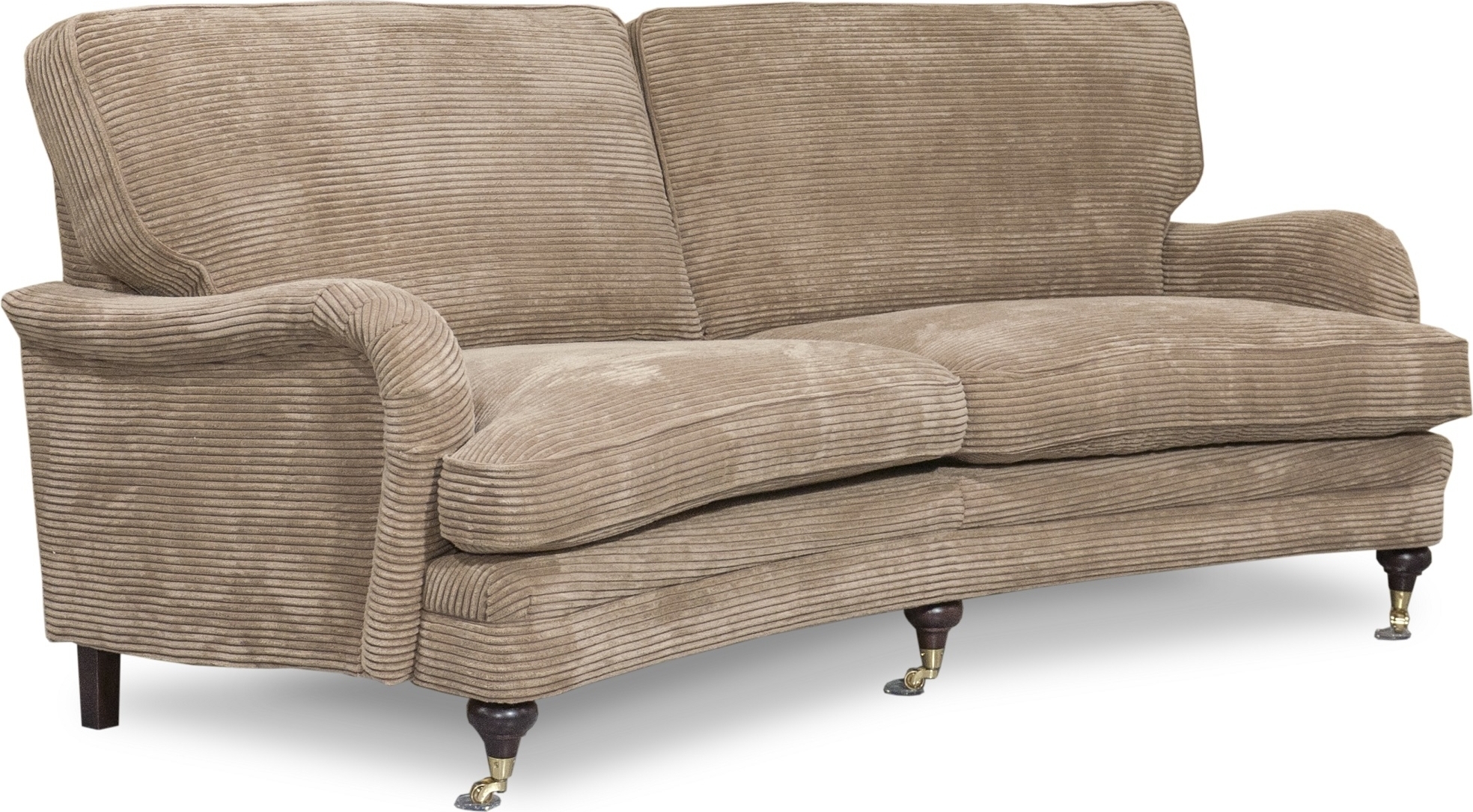 Denna svängda soffa kombinerar tidlös elegans med modern komfort. Den klassiska Howard-designen tillsammans med det mjuka bruna manchestertyget skapar en stilfull och inbjudande möbel som passar perfekt i vardagsrum och andra sociala utrymmen. Den svängda formen ger soffan en unik karaktär och bidrar till en bekväm och avslappnad sittupplevelse.
