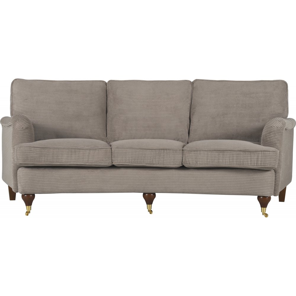 Denna 4-sits svängda soffa är en elegant och rymlig möbel i klassisk Howard-stil. Den mjuka beigea manchesterklädseln ger en exklusiv och inbjudande känsla, medan den svängda formen skapar ett harmonsik uttryck i vardagsrum och sociala utrymmen. Soffan erbjuder generöst med sittutrymme och komfort för både familj och gäster.