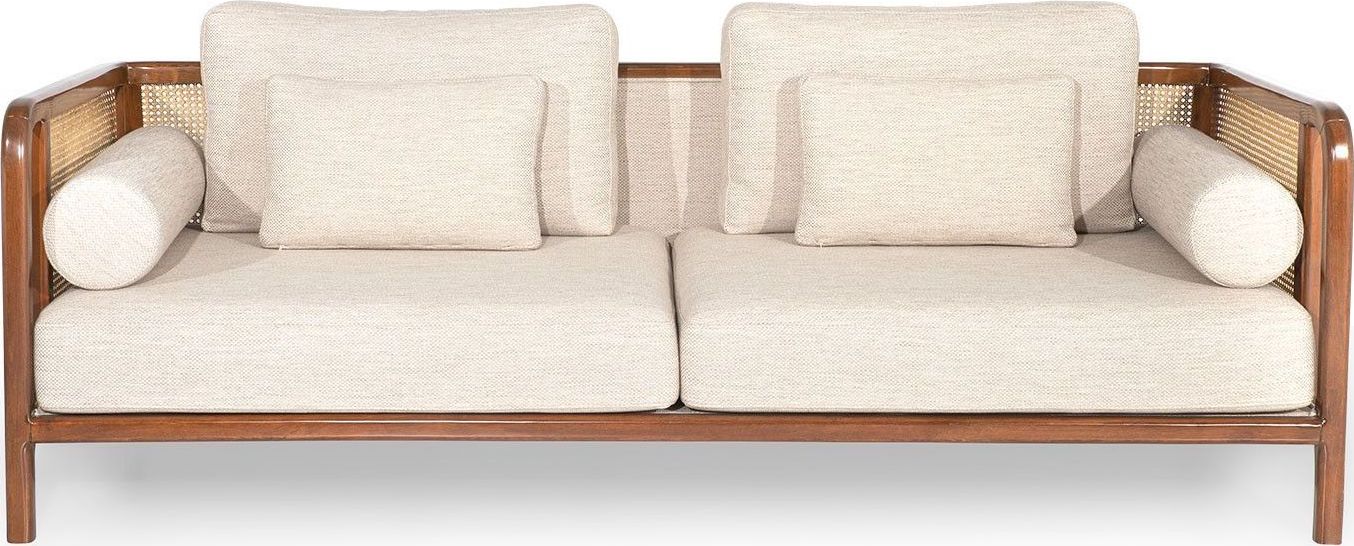 Denna soffa är en modern möbel som kombinerar stilren design med hög komfort. Klädd i en mjuk creamfärgad klädsel ger soffan ett ljust och sofistikerat uttryck som smälter in i både moderna och klassiska inredningar. Dess rymliga design gör den perfekt för familjens avkoppling eller umgänge med gäster.