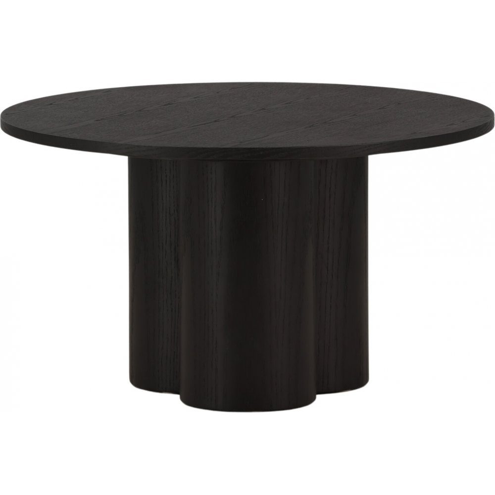 Modernt soffbord som imponerar med sina mjuka former, stilrena design och trendsäkra kulör. Soffbordet är tillverkat i svart MDF med faner och har en cylinderformad uppbyggnad vilket skapar en läcker dimension till bordet. Den runda toppskivan är fanerad och stommen utgörs av tre cylinderformade ben, samlade under bordets mitt. Bordet är otroligt användbart både som soffbord eller sidobord och den nätta storleken gör bordet enkelt att placera och flytta runt i hemmet.