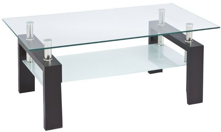 Ett härligt soffbord med en modern design. Underredet är tillverkat av svartlackerad MDF och med detaljer av kromad metall. Bordsskivan är av härdat glas med en praktisk underhylla för smart förvaring.