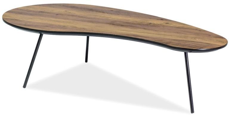 Ett snyggt soffbord med en modern design. Underredet är tillverkat av svart lackerad metall och bordsskivan är av laminerad MDF med ett mycket vackert valnöt utförande.
