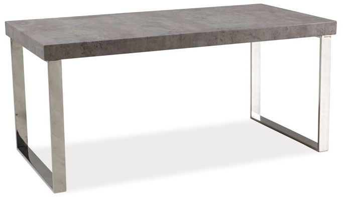 Ett mysigt soffbord med en modern design. Underredet är tillverkat av kromad metall och bordsskivan är av betongfärgad MDF.