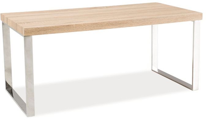 Ett mysigt soffbord med en modern design. Underredet är tillverkat av kromad metall och bordsskivan är av MDF med härligt sonoma ek utförande.
