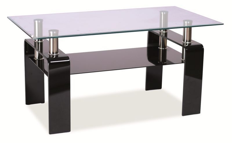 Ett fint soffbord med en modern design. Underredet är tillverkat av lackerad MDF med detaljer i krom och bordsskivan är av härdat glas med en praktisk underhylla för smart förvaring.