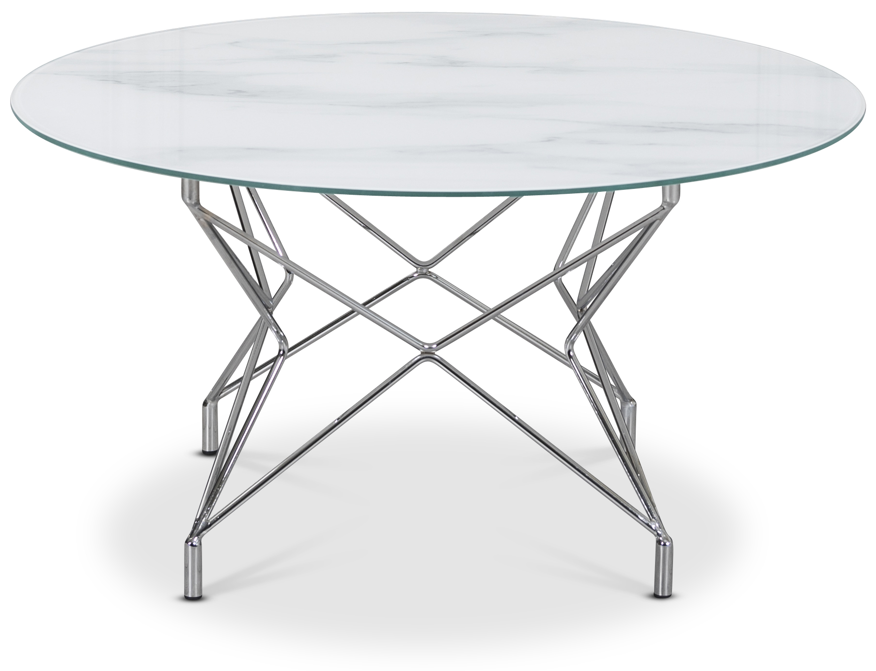 Soffbord Star 90 cm - Vitt marmorerat glas / Kromat underrede