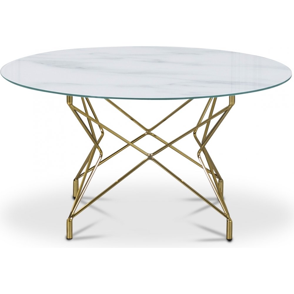 Soffbord Star 90 cm - Vitt marmorerat glas / mässingsfärgat underrede