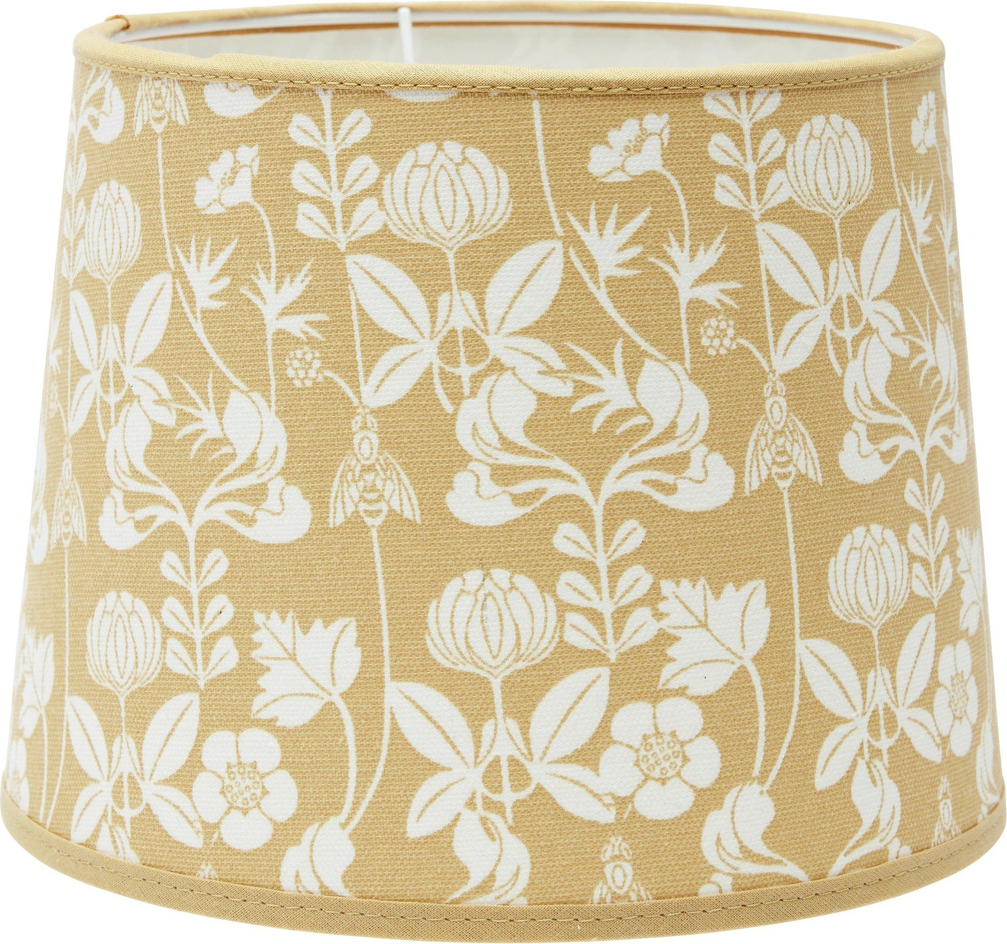 War välkommen kära du, till Carl Larsson och hans fru! Sofia Lampskärm med ett mönstrat tryck illustrerat av Carl Larsson. Mönstret finns som försättsblad till några av Carl Larssons böcker, bland annat titlarna "De Mina" och "Min Familj". Detta tyg ingår i serien från Carl Larsson, där flera färgställningar och tryckta illustrationer ingår. Skärmen har en ljus insida och matchande kantband. Formen är lätt utställd och har ett E27-fäste. Ljuskälla E27 köpes separat.