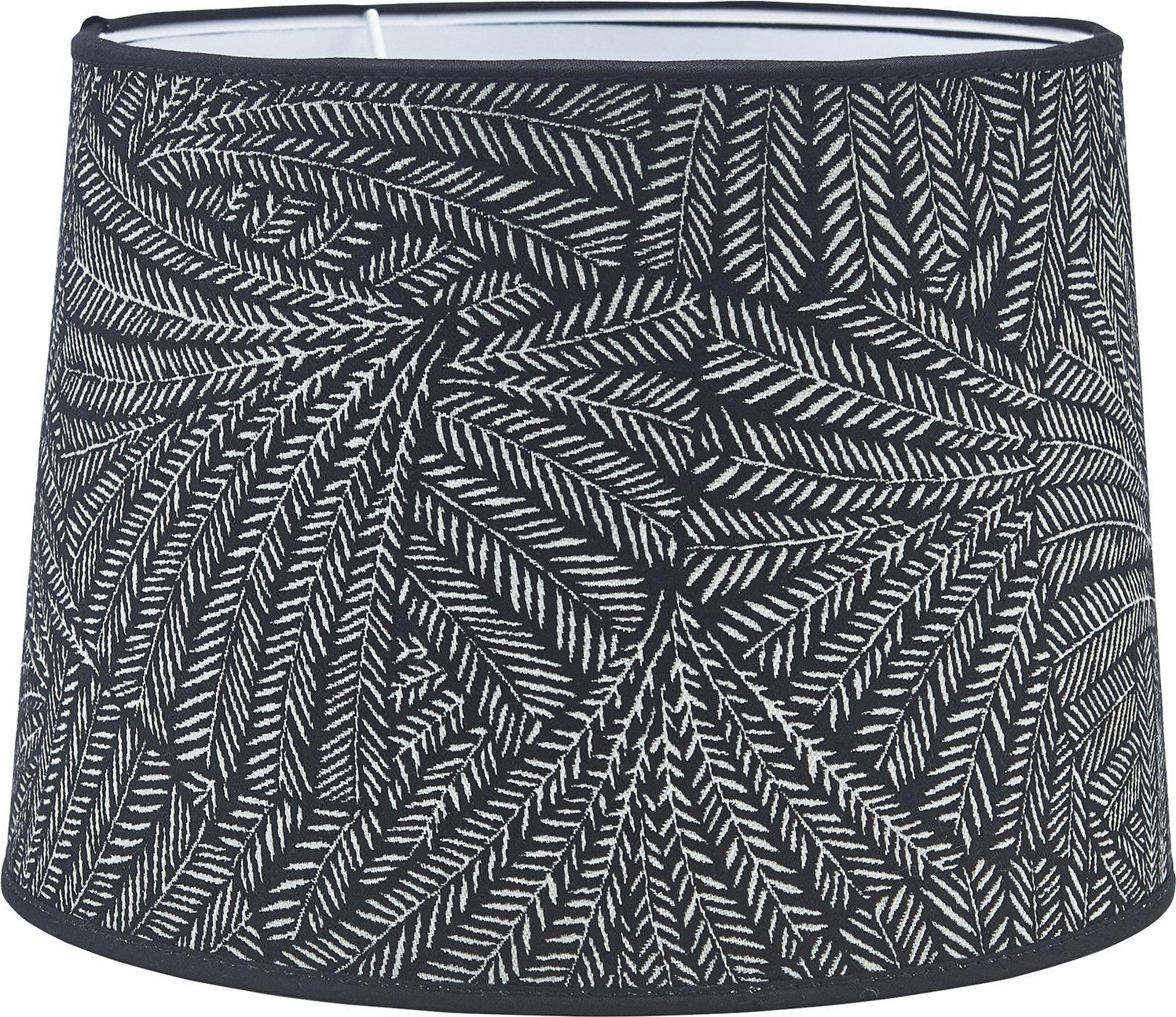 Sofia Lampskärm i ett jacquardvävt tyg. Bladverket i en kontrastfärg gör att tyget får ett fint djup vilket skapar en lyxig känsla. Skärmen har en ljus insida och matchande kantband. E27 ringfäste. Ljuskälla E27 köpes separat.
