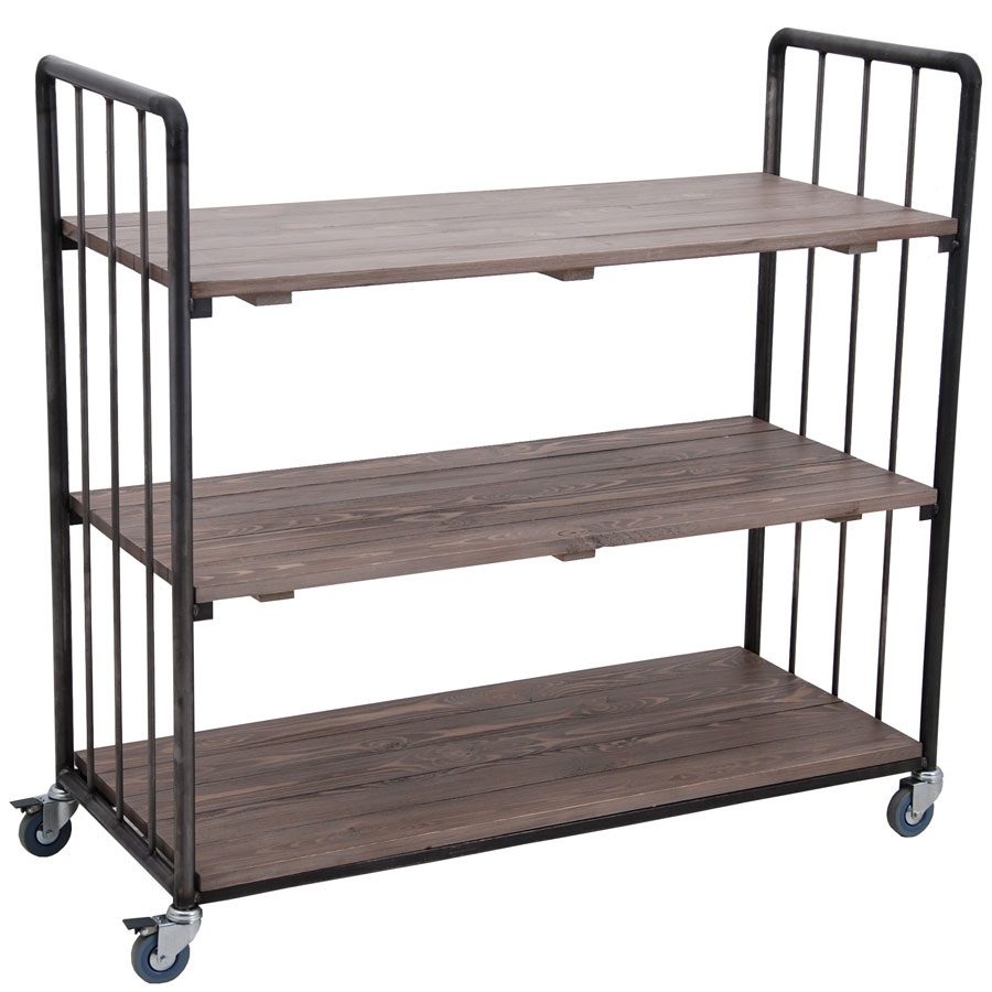 Soho vintage bokhylla i metallställning med hyllplan av massivt gråbetsat trä. Tre hyllplan till förvaring. Varje möbel görs förhand och är unik.