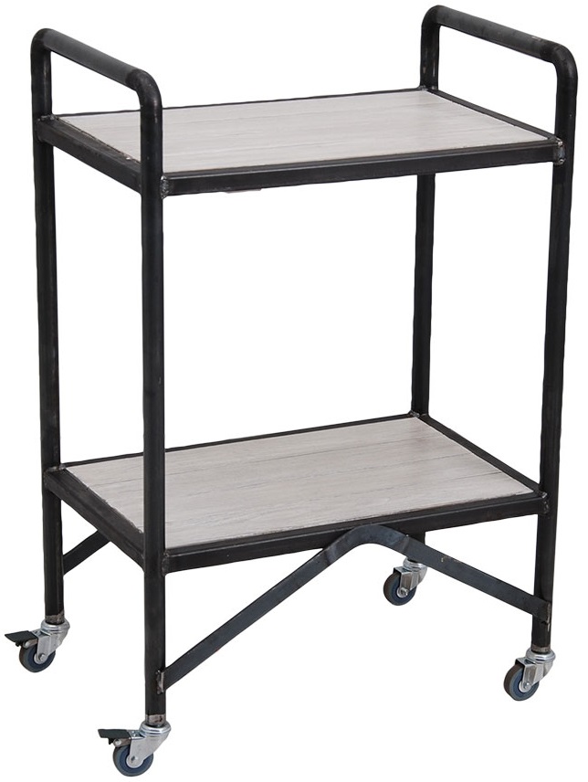 Ett häftigt och välbyggd drinkvagn med en tuff design. Stommen är tillverkad i rå obehandlad metall med toppskivor i vitmålat trä.