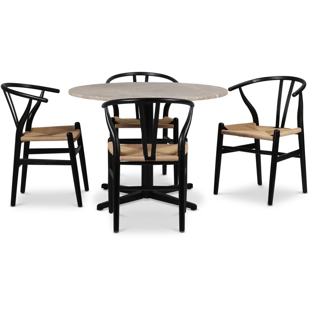 SOHO matgrupp Ø105 cm inkl. 4 st Brandon karmstolar - Matt svart kryssfot / Beige Empradore