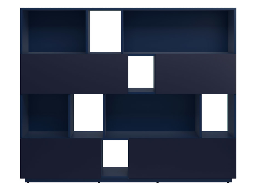 Rymlig bokhylla som även har fack och lådor. Erbjuder rikligt med förvaring.