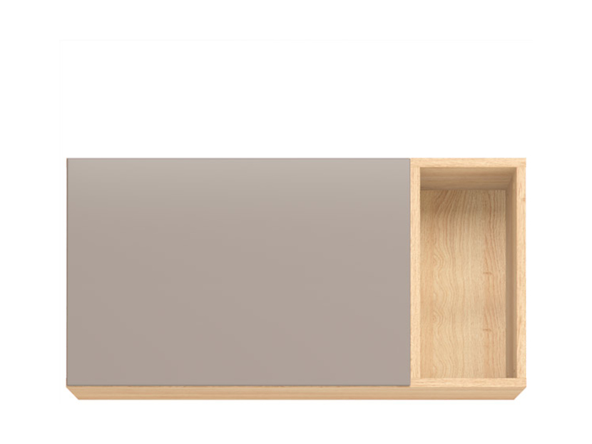 Väggskåp i ekimitation/grå med två fack. Luckan har "push to open" funktion och öppnas med ett tryck. Kan med fördel kombineras med andra möbler i samma serie.