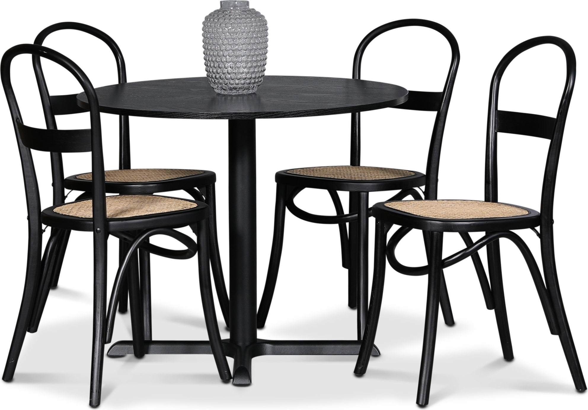 Solano matgrupp: Bord 90 cm inklusive 4 Axe stolar - Svart Ask / Rotting