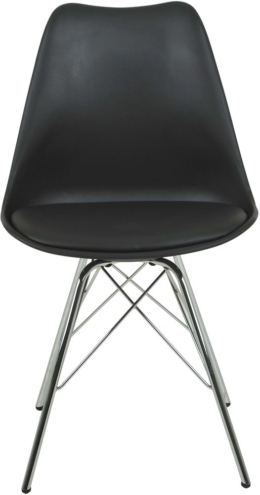 Modern stol i svart PP/PU med ben i kromad metall.