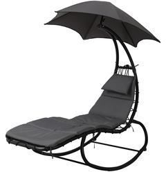 En mycket behaglig solsäng med en modern design. Tillverkad i stål och klädd med polyester. Sängen funkar som en gungstol och har ett praktiskt solskydd.