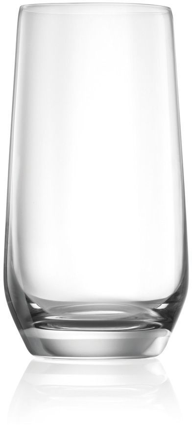 Modernt drinkglas i stor storlek, klarglas och kristall. Glasen är väldigt tåliga och är väldigt klara och glansiga. Hållbarheten är testad med en stålkula på 95 gram som har släppts från 30 cm höjd. Foten tål ett tryck på hela 30 kg och en temperaturskillnad på 60 grader.
