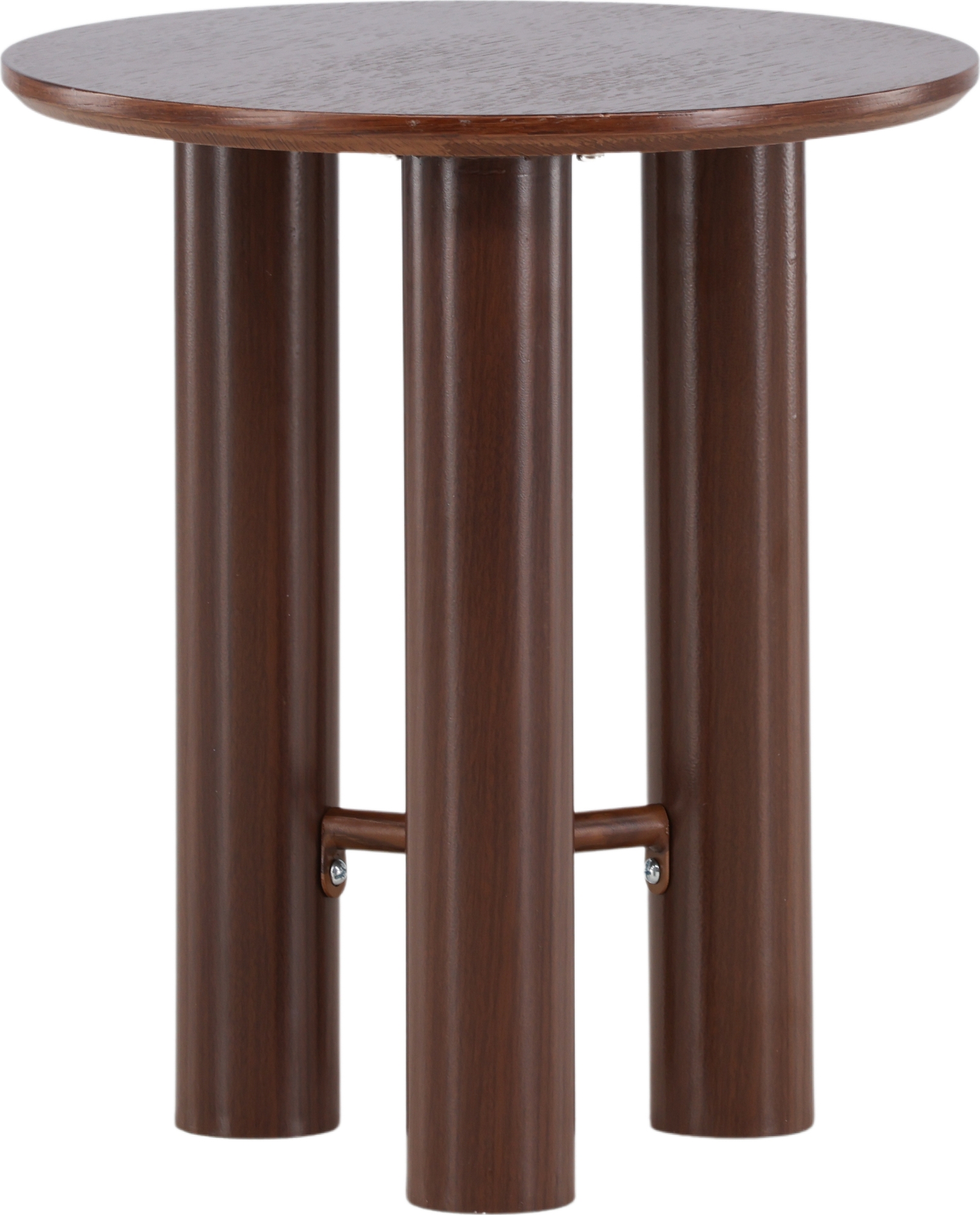 Höj stilnivån i ditt hem med ett trendsäkert sidobord. Bordet är tillverkat i mörkbrun MDF med faner och har tre cylinderformade ben med en rund toppskiva. Bordet är otroligt användbart både som avlastningsyta, piedestal eller sidobord och den nätta storleken gör bordet lätt att placera och flytta runt i hemmet.