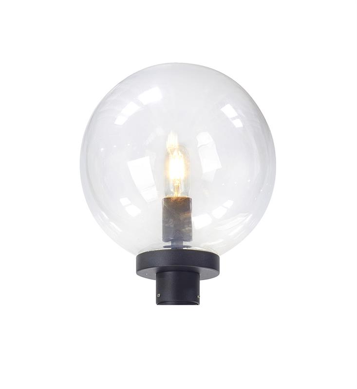 Sphere lamphuvud för utomhusbelysning. Passar till Arctic stolpe. Inre diameter 60mm. Ingår kablar och en IP68 kopplingsbox som är förberedd för seriekoppling. Fast, jordad anslutning. Stor (E27) sockel för max 100W glödljus eller motsvarande i halogen, lågenergi eller LED. Klassisk design, basen är tillverkad i svartlackerad aluminium med en glob i tåligt klarglas.