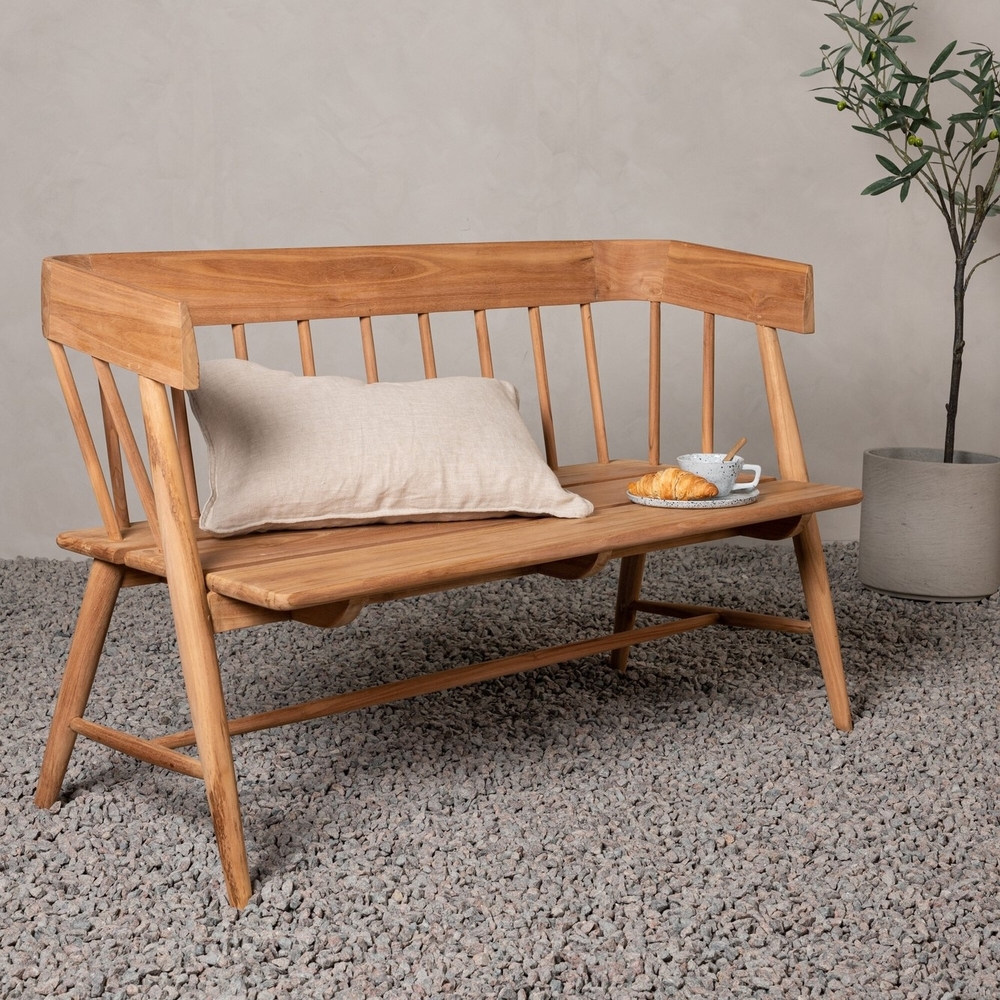 Split - din nya favoritmöbel ute på altanen! Split är vår charmiga soffbänk i ett klassiskt utförande för utomhusbruk helt tillverkad i det smakfulla materialet teak. Bänken har följsamma former med ett mjukt utförande och rygg- samt armstöd för extra bekvämlighet. Möblera uteplatsen mysigt med en oemotståndlig soffbänk i modern design och njut av soliga luncher eller härlig sommarbris på kvällarna.