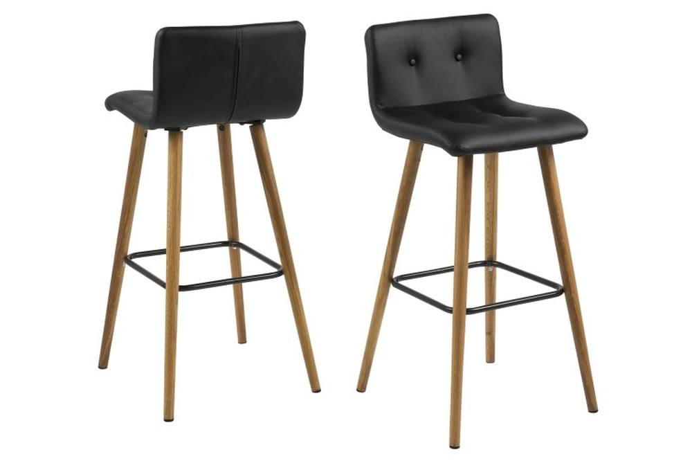 Stilig barstol, klädd med svart konstläder (PU) och sits fodrad med FR skum med benen är gjorda av oljebehandlad massiv ek och har fotstöd av metall. Stolen ingår i vår Springfield serie.