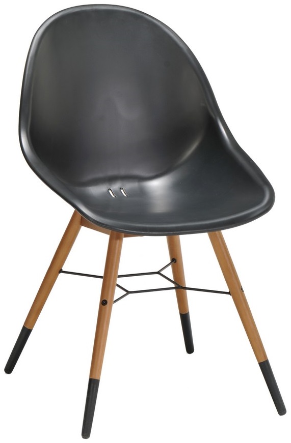 Stilfull och praktisk trädgårdsstol i plast och ben av Eucalyptus, vattenavrinning i stolssitsen. Metallstagen mellan benen gör stolen stabil, tassar i plast som skyddar träet.
