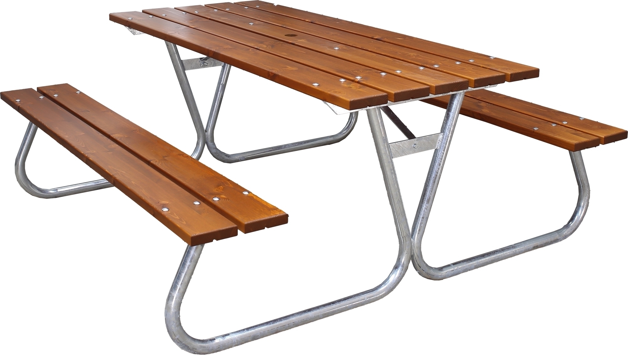 Rejäl konstruktion, kraftiga rör och brädor. Ett bänkbord som kräver minimalt med underhåll. Picknickbord Stabil passar i de tuffaste miljöer, samtidigt som den är lätt att underhålla. Bord med fasta bänkar i ett och plats för 6 personer. Ett bra val för rastplatser, parker och uteplatser med mycket aktivitet. Levereras omonterad.
