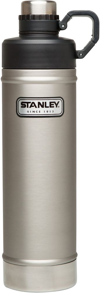 Stanley vakuum-vattenflaska Classic, håller kalla drycker kalla i upp till 11 timmar, ännu längre med isbitar. Flaskan är gjord av rostfritt 18/8 stål, har dubbla väggar och vakuum, detta ger en väldigt god isolernade förmåga. Vattenflaskan är läcksäker. Smart design på lock, går att dricka ur den lilla pipen men locket kan även tas av flaskan för påfyllning eller rengöring.