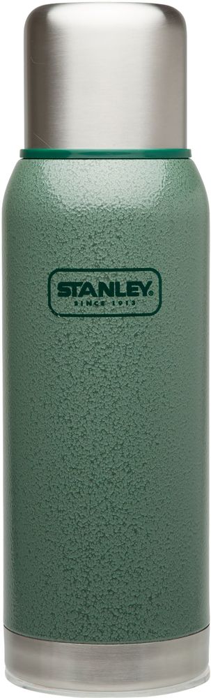 Klassisk termos i grönt från Stanley. Denna termos håller vatten varmt eller kallt i upp till 24 timmar. Tillverkad av rostfritt 18/8 stål och har dubbla väggar samt vakuum för en god isolerande förmåga. Även locket är isolerat och fungerar som mugg, rymmer ca 2,4 dl. Termosen är tålig och läckfri.
