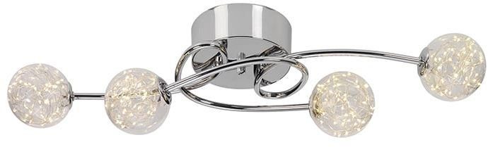 En mysig plafond med en modern design. Tillverkad i kromad metall och med glaskupor som ger ifrån sig ett elegant ljus som skapar en liten stjärnhimmel i mörkret.