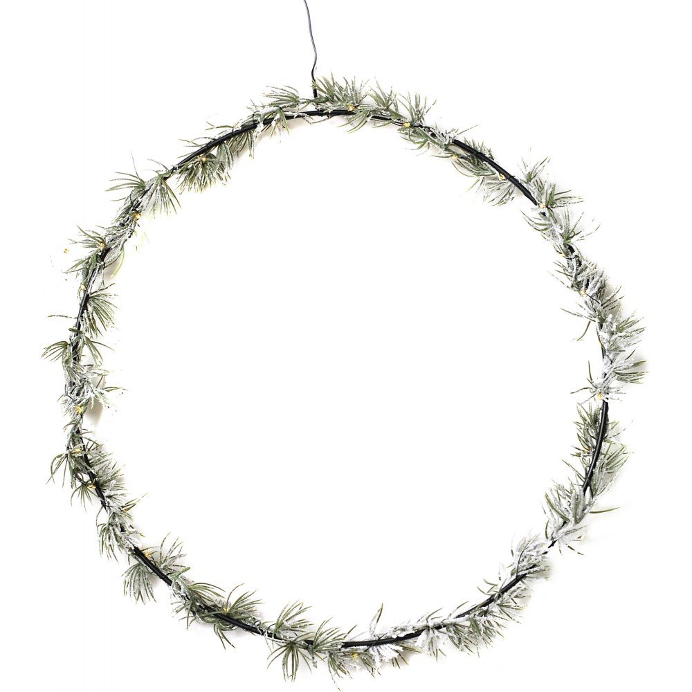 Hängande juldekoration i form av en krans. Slinga med 40 st LED-ljus. Timer 6/18 h. Drivs av 3 st AAA-batterier(ingår ej).