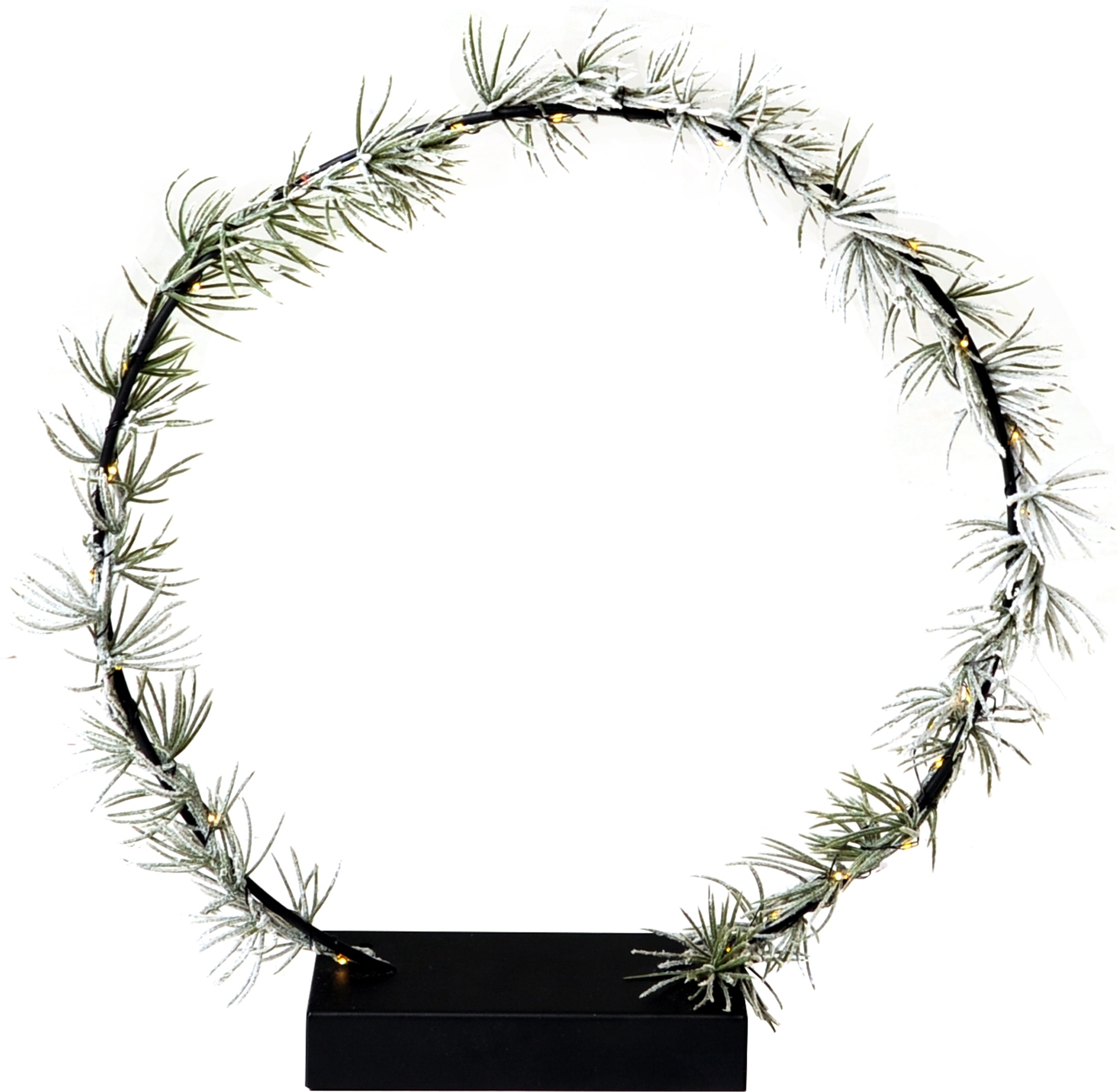 Juldekoration på fot i form av en krans. Slinga med 50 st LED-ljus. Timer 6/18 h. Drivs av 3 st AAA-batterier(ingår ej).