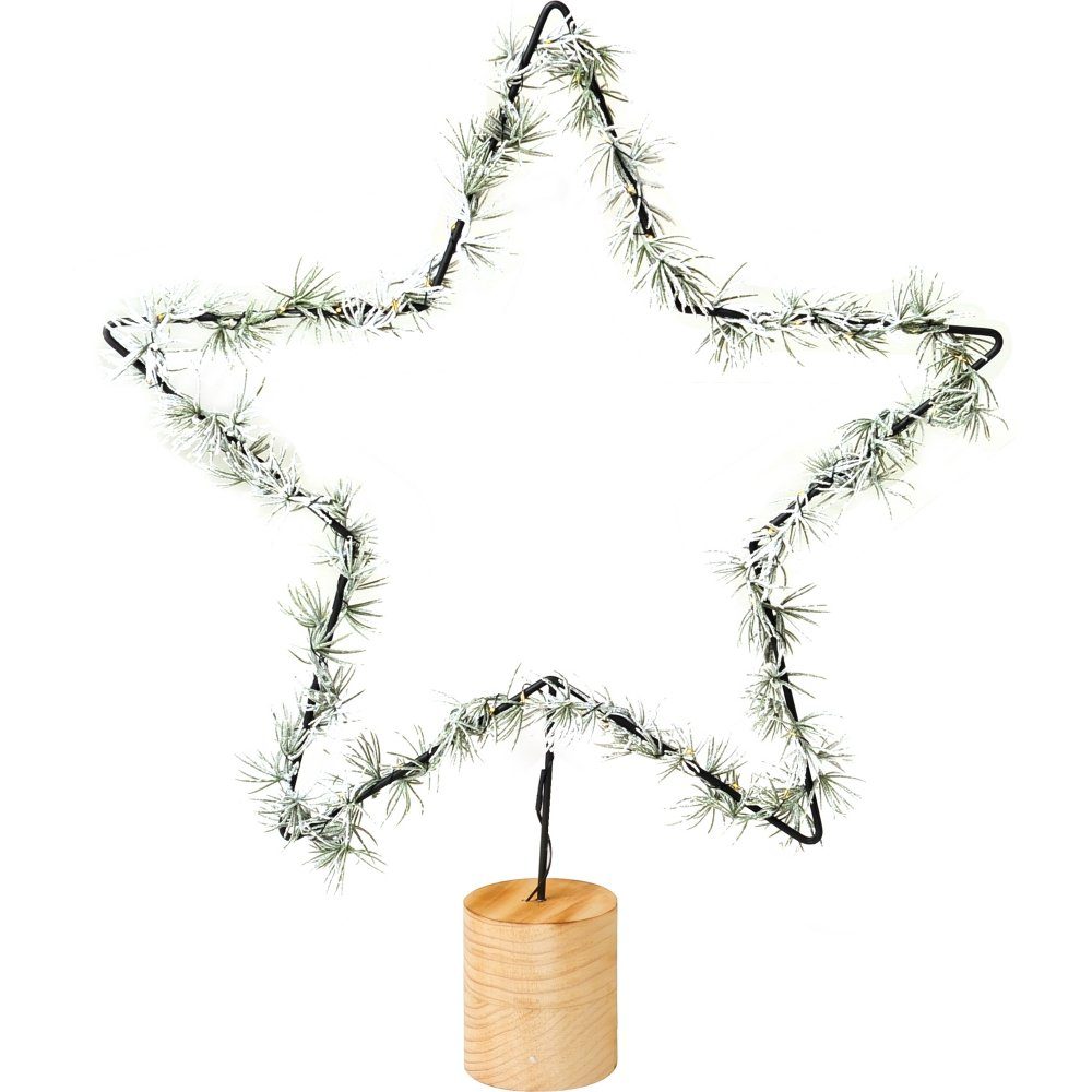 Juldekoration på fot i form av en stjärna. Slinga med 50 st LED-ljus. Timer 6/18 h. Drivs av 3 st AAA-batterier(ingår ej).