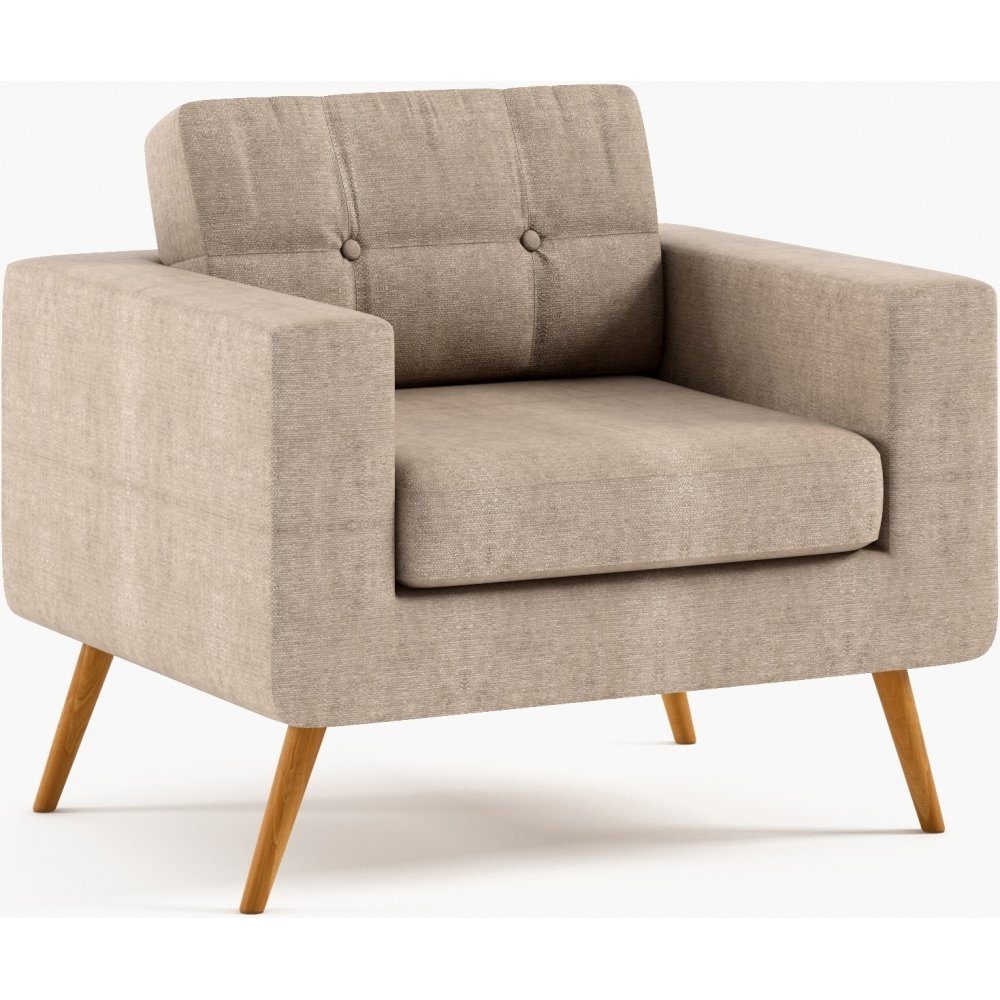 Stilfull högkvalitativ fåtölj i möbelserie Stella. Anpassningsbar efter ditt vardagsrum! Välj bland ett rikt urval av möbelklädslar, antingen tyg eller konstläder och matcha med träben i nio olika färger. Stella möbelserie innehåller 2-sits soffa, 3-sits soffa, hörnsoffa och fåtölj.