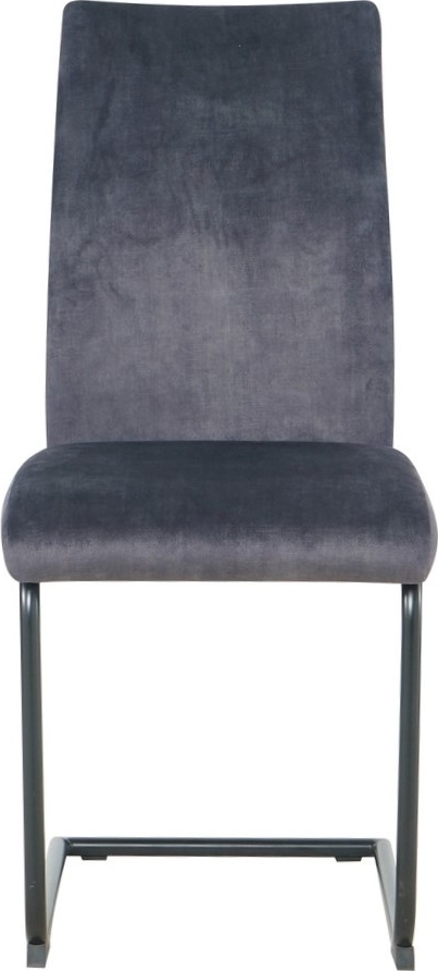 Matstol med klädsel av sammetstyg och underrede av metall.