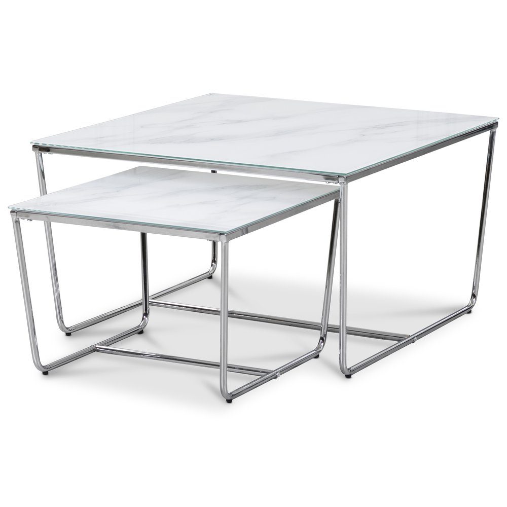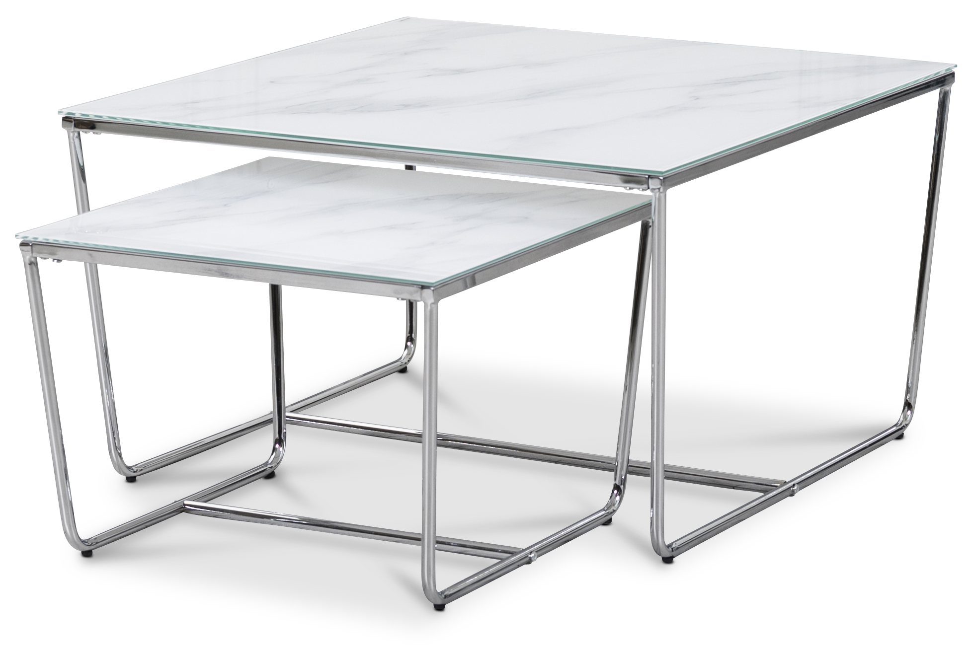 Stella Satsbord 75 x 75 cm - Vitt marmorerat glas / Kromat underrede