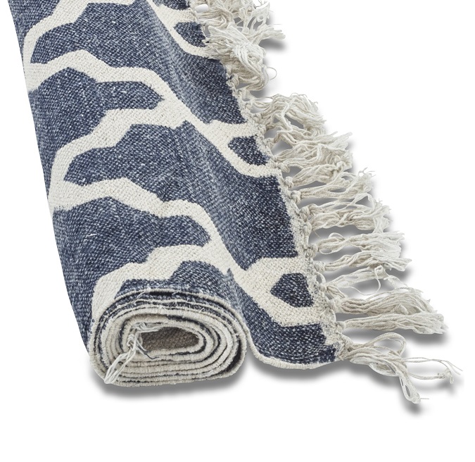 Äkta stentvättad bomullsmatta av hög kvalitet i färgen Blå/Vit!