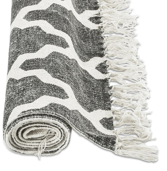 Äkta stentvättad bomullsmatta av hög kvalitet i svart och vitt.